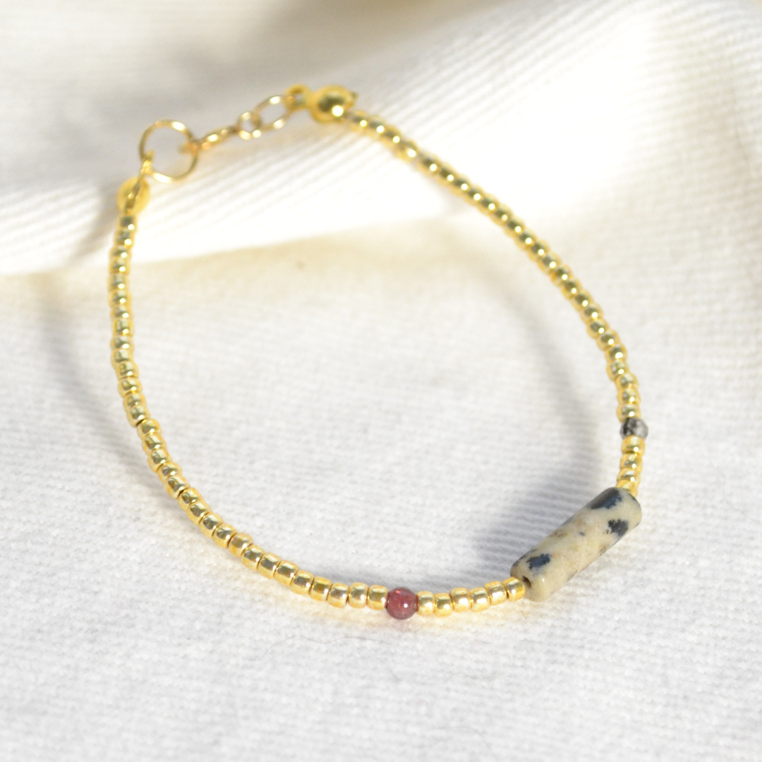 Bransoletka wykonana jest własnoręcznie z kamieni naturalnych, więc ich odcień może się delikatnie różnić.