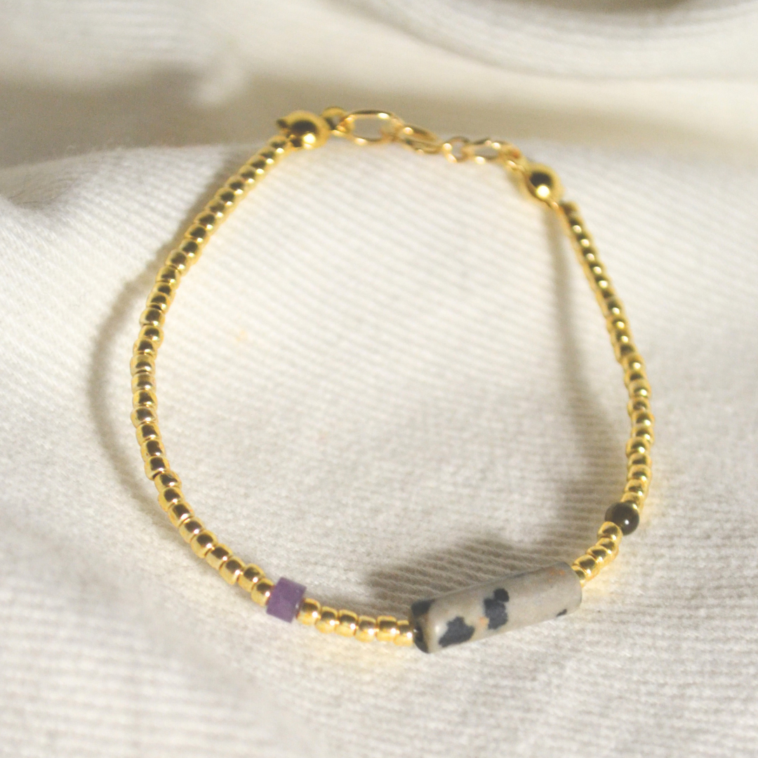 Bransoletka wykonana jest własnoręcznie z kamieni naturalnych, więc ich odcień może się delikatnie różnić.